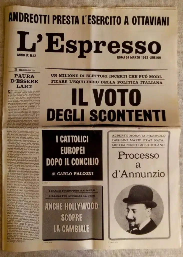 Alberto Moravia – Pierpaolo Pasolini – Mario Praz – Natalino Sapegno – Paolo Milano, Processo a d’Annunzio, «L’Espresso», 24 marzo 1963, pp. 12-13.